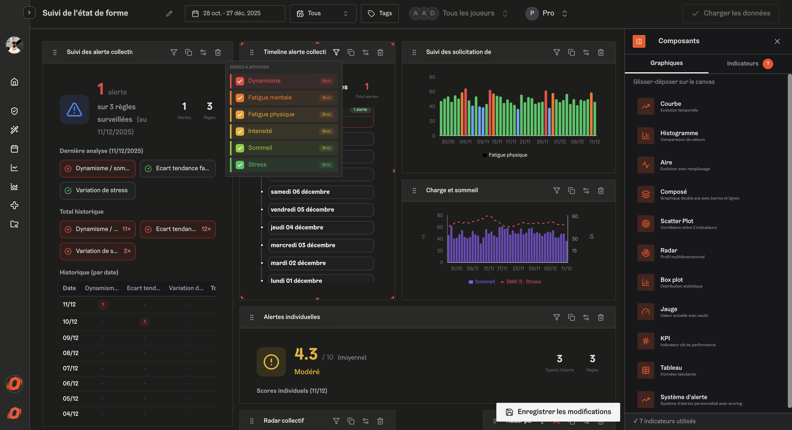 Analysez avec précision toutes vos données : performances, wellness, charge d'entraînement... Prenez des décisions éclairées basées sur des informations fiables.